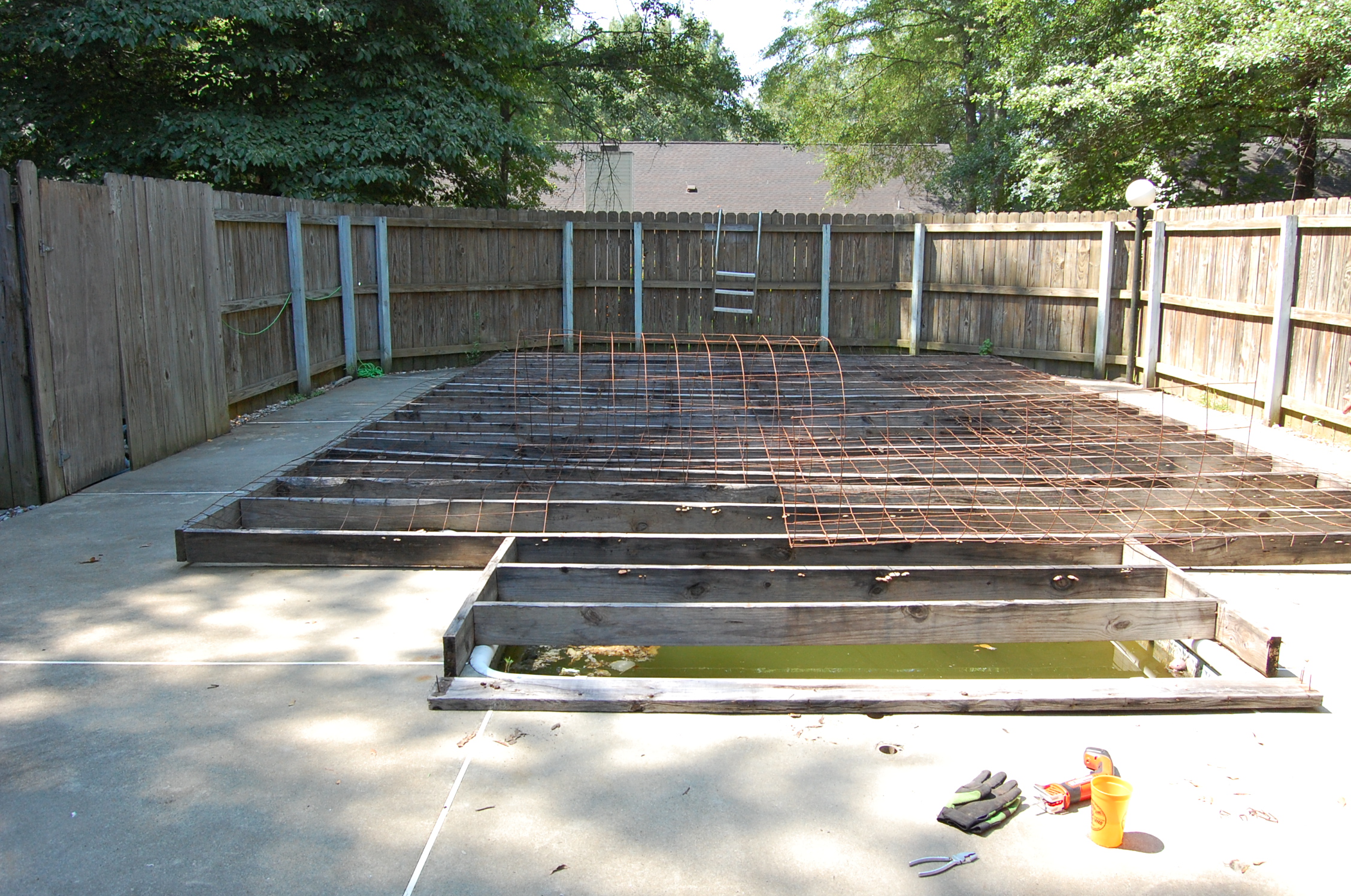 So, when I became the owner of this fine pool, it was covered with 2X2 boards, a thick heavy plastic tarp thing, and a thicker than “chicken wire” kind of fencing nailed to the 2X2 boards. Remember? I purchased a HUD repo. They have their “rules and regulations,” and one of those is to drain the pool, and then put this safety feature over it in order to prevent injuries, deaths, or squatter-swimming.